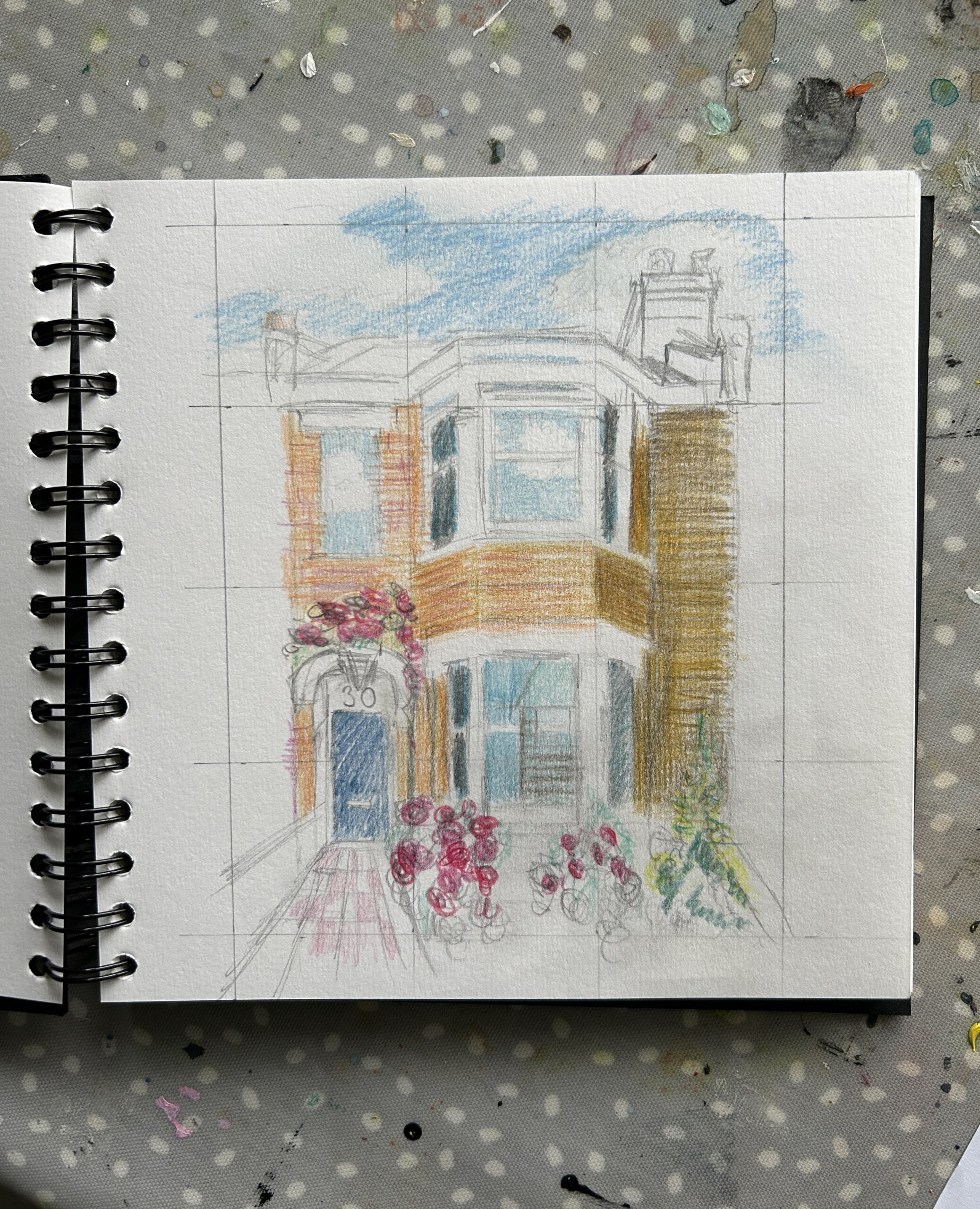 She wanted a painting of their childhood home – a Victorian terrace, where she had lived with her parents and sister. When her parents passed away, her sister took on the house and began work to renovate it. My client wanted a painting which reflected how the house used to be whilst growing up and the nostalgia and memories associated with it. She was going to gift the painting to her sister as a moving in gift.