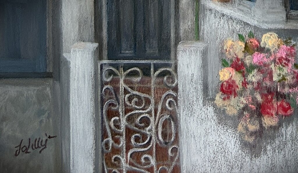 I spent a long time getting the architectural features of the windows and the perspective correct. Painting buildings accurately involves a lot of detailed drawing.